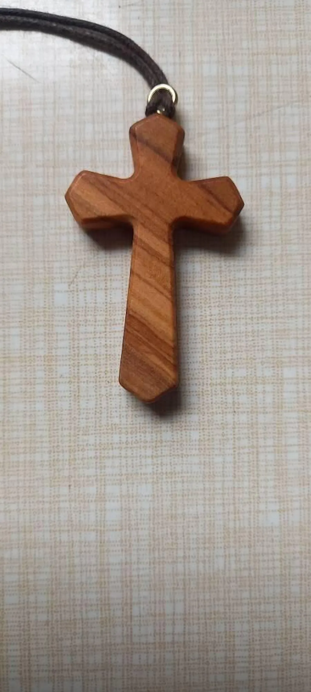 Dieses Kreuz ist aus Olivenholz des Heiligen Landes handgeschnitzt und wurde von Handwerkern in Nazareth mit Sorgfalt geformt. Das Holz stammt aus uralten Hainen, Bäumen, die Jahrhunderte des Gebets und der Tradition in sich aufgenommen haben. Seine von Hand polierte Maserung trägt den Geist des Landes und die Kraft der Zeit in sich. Die Form ist ausgewogen und klar – ein Zeichen des Glaubens, das jeden Tag getragen werden kann. Jedes Stück wird mit Geduld und Zielstrebigkeit gefertigt und spiegelt die Hingabe wider, die über Generationen hinweg in der Handwerkskunst gewachsen ist. An einer weichen Baumwollkordel aufgehängt, liegt das Kreuz sanft auf dem Herzen. Es ist nicht zur Schau gestellt, sondern für die Gegenwart, zum Gebet, zur Besinnung und zur Verbindung mit dem Größeren geschaffen.