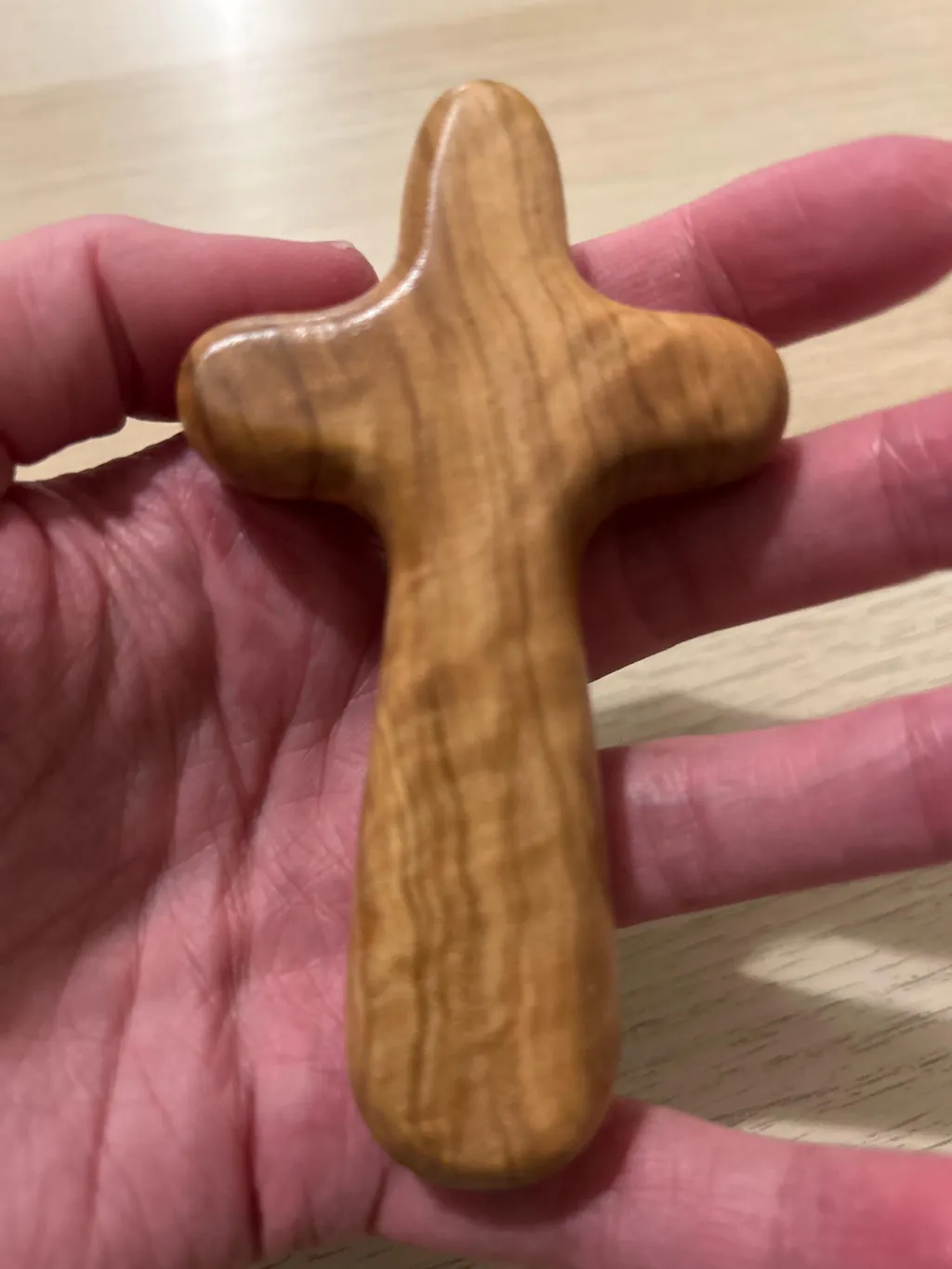 This is a beautiful comfort cross that looks even better in real life than in the pictures. It feels like a premium product. When you buy this cross you also support Christian families in the Holy Land. I would buy from this seller again.