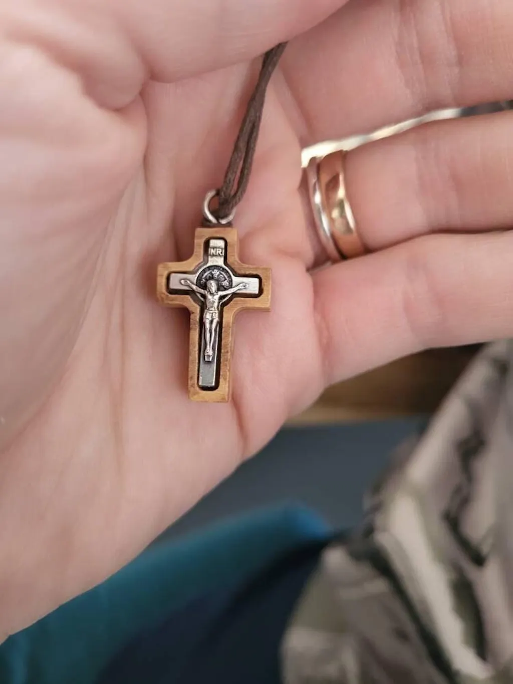 Die Stillness Crucifix Halskette ist ein schlichtes Symbol des Glaubens, handgeschnitzt aus Olivenholz aus den alten Hainen Nazareths. Jedes Stück trägt das Erbe von Generationen in sich, seine Maserung erzählt eine stille Geschichte von Zeit und Tradition. In der Mitte ruht eine silberfarbene Christusfigur, darüber die INRI-Inschrift – eine schlichte Erinnerung an sein Opfer. Das von Kunsthandwerkern im Heiligen Land mit Sorgfalt gefertigte Kreuz spiegelt durch seine Schlichtheit Hingabe wider. Seine Form lädt zum Nachdenken ein, während die robuste Baumwollkordel es sanft am Herzen ruhen lässt. Mehr als Schmuck ist es ein Begleiter im Gebet und eine tägliche Erinnerung an das ewige Licht.