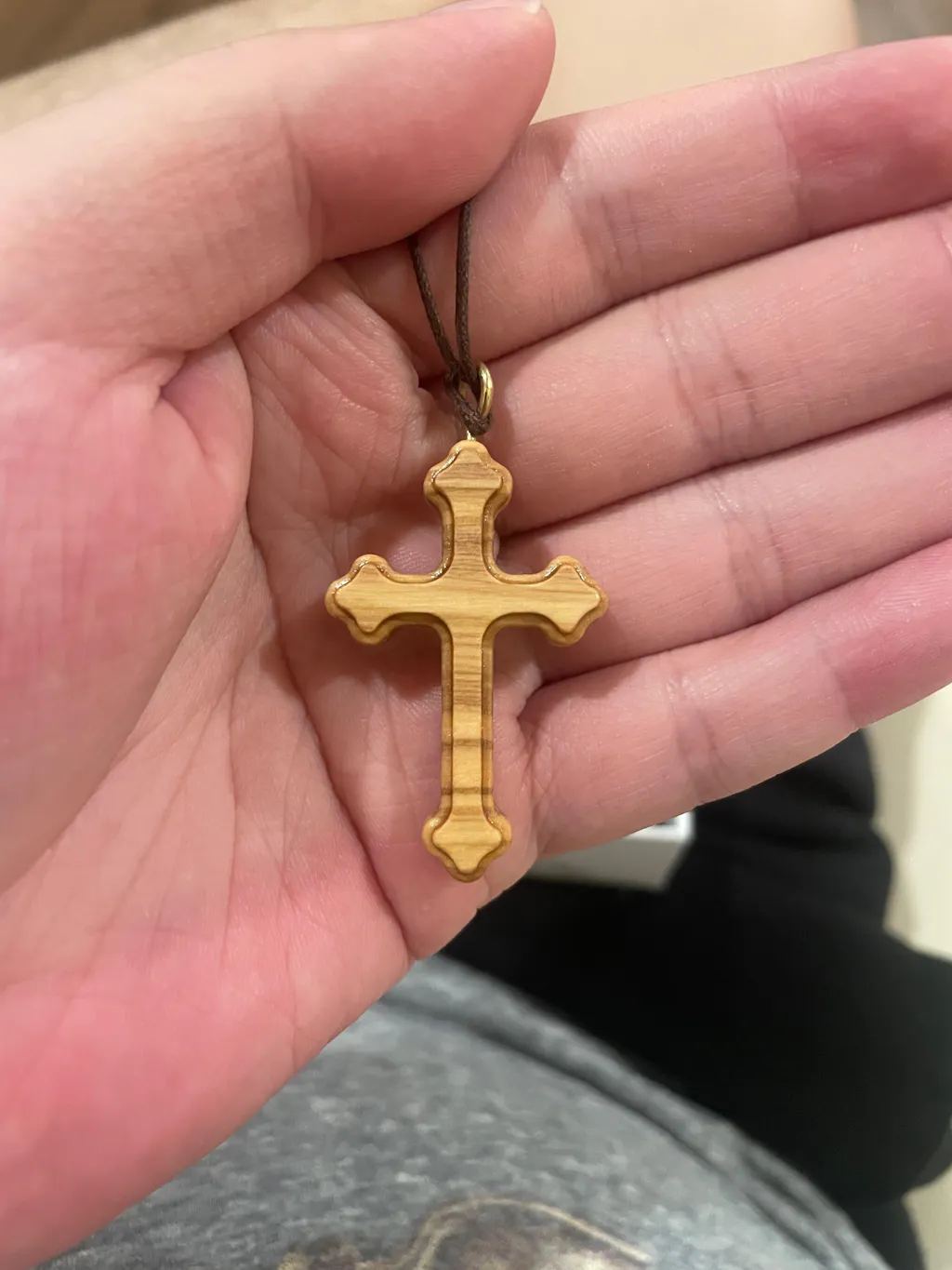 This Orthodox cross is carved from the olive trees of the Galilee. The wood carries the grain and scent of Nazareth, the same hills where Christ once walked. Each cross is shaped slowly, with steady hands. Every cut of the chisel, and every line is made with reverence. It is simple work, yet it holds the weight of centuries of faith. The cross hangs on a plain cotton cord so it may rest close to your heart. It is not just something to wear, but a companion for the journey, a reminder of the prayers and the peace of the Holy Land. Carry it with reverence.